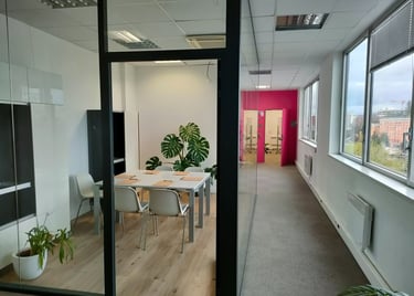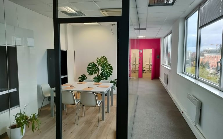 Bureau lumineux de 12 m2 , idéal pour la location d'un bureau à la journée, vos entretiens individuels ou accueillir un petit groupe de 2 à 8 personnes